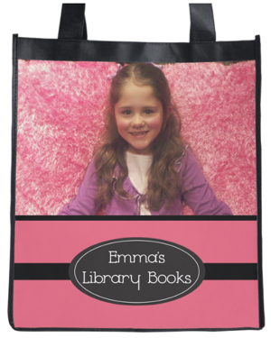 You can add your own photos or even a company logo. I made the one above for Emma’s library books, hoping that they would find their way back into a labeled bag.